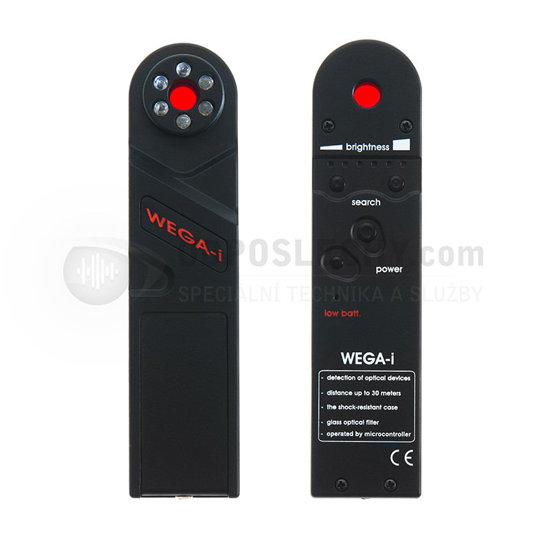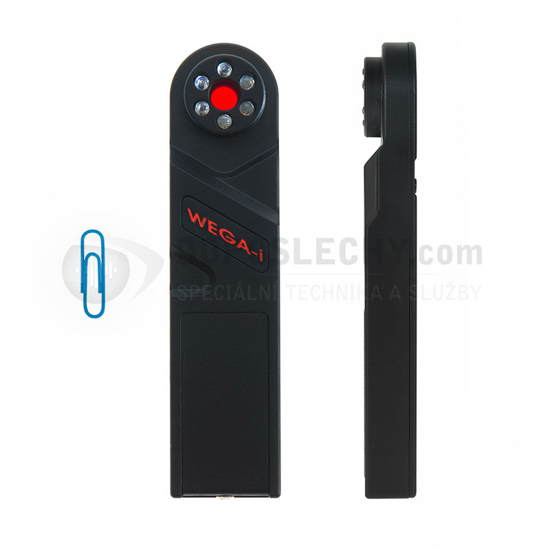 Profesionální detektor Wega-i je účinný prostředek určený k vyhledávání všech objektivů skrytých kamer. Samozřejmostí je detekce mikro objektivů, včetně těch, které mají průměr pod 1 mm a jsou určené ke skrytému sledování dění v kancelářích, v zasedacích místnostech nebo v bytech. Rychlou kontrolou lze spolehlivě odhalit také mikro objektivy, které mohou být umístěny v oděvech, v zavazadlech, v klíčenkách, v perech nebo v dalších předmětech a které jsou lidským okem prakticky neodhalitelné. Objektiv kamery je detekován i v případech, kdy je kamera vypnuta.