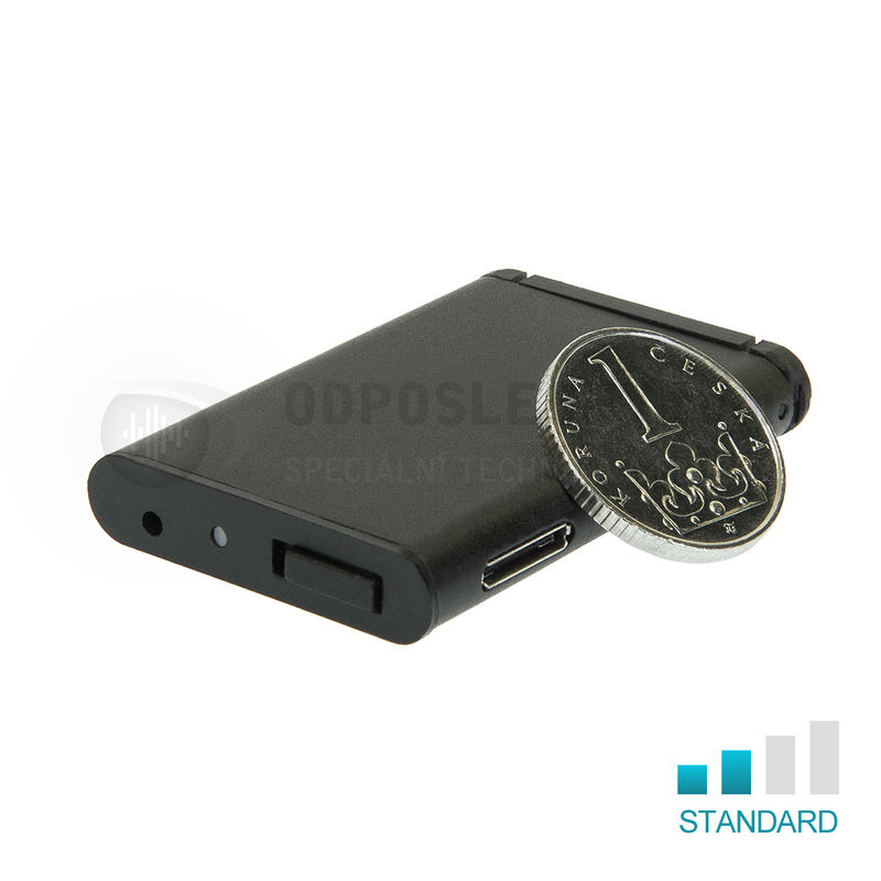 Díky svému tvaru a extrémně malým rozměrům lze mikrodiktafon skrytě umístit téměř kdekoliv. Záznamník je tenký pouze 7 mm a díky kovovému provedení také odolný proti nárazům. Provoz na baterii výrazně zvyšuje účinnost operativního sledování, kdy bez nutnosti dobíjení lze záznamy stáhnout a rychle vyměnit baterii pro další nahrávání.
