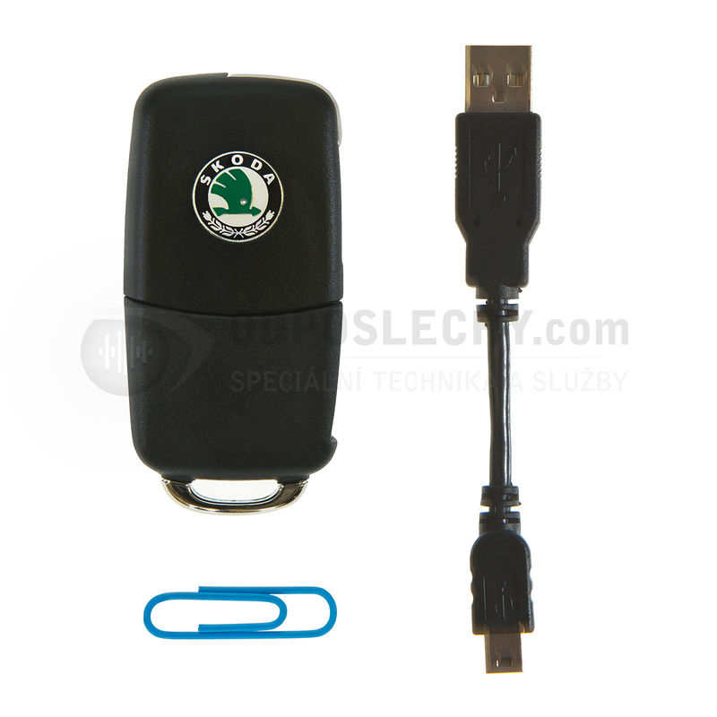 Mikrodiktafon Autoklíč ŠKODA CZ 27 GEN2 Black Edition CZ je miniaturní audio odposlech s nahráváním do vnitřní paměti. Mikro diktafon je vložen do originálního klíčku od vozidla Škoda a tím je vhodný zejména pro utajené nahrávání jednání a schůzek. Zařízení se vyznačuje profesionální kamufláží, dlouhou dobou výdrže, velmi nízkou spotřebou energie, širokým frekvenčním rozsahem, velkým dynamickým rozsahem, vysoce citlivým vestavěným mikrofonem Knowles a systémy hlasové a časové aktivace záznamu. Mikro diktafon pak lze jednoduše připojit k počítači pomocí USB adaptéru, kde si záznam poslechnete.