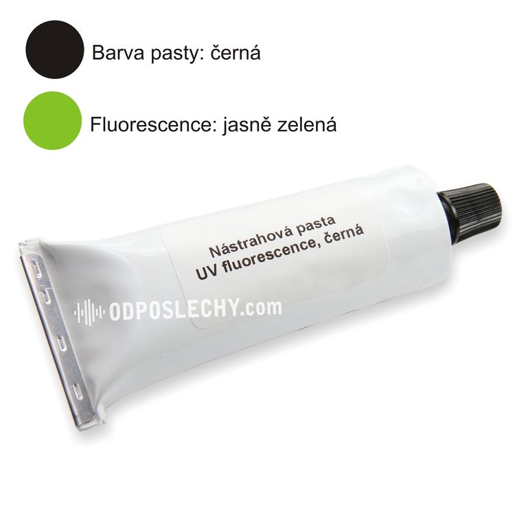 Nástrahová pasta černé barvy se zelenou UV fluorescencí; vhodná pro označení černých předmětů a povrchů; odolná vůči vodě a větru - možnost použití v exteriéru; po nanesení okem prakticky nedetekovatelná; vysoká přilnavost k povrchu; zviditelnění stop na kůži nebo oděvu pachatele dlouhovlnným UV světlem; obsah tuby 60 ml