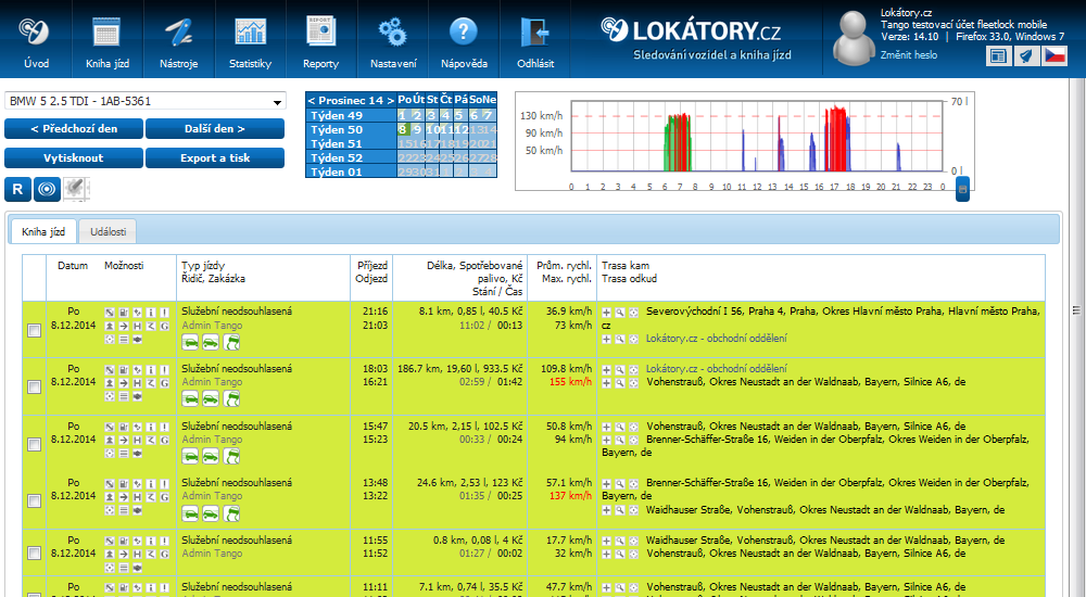 Portál Lokátory.cz automaticky vytváří přehlednou knihu jízd, která je zobrazena ve formě kalendáře. V detailech každého dne naleznete podrobnosti k jednotlivým jízdám, které lze dále zobrazit na mapě. Nezáleží na tom, zda sledujete vozidlo, osobu pohybující se pěšky či zásilku během přepravy. Kniha jízd vám vždy zajistí přehledný výstup, ve kterém se snadno zorientujete.