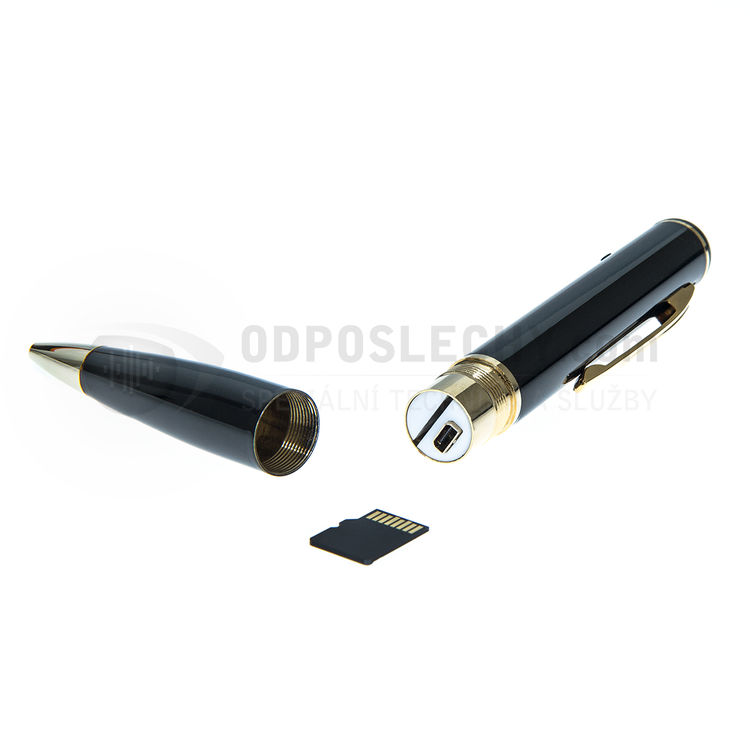 Všechny záznamy jsou ukládány na paměťovou micro SD kartu, podporovány jsou až do velikosti 128 GB, součástí dodávky je paměťová karta o velikosti 16 GB. Skrytou kameru v propisce snadno připojíte k PC pomocí dodávaného USB kabelu.