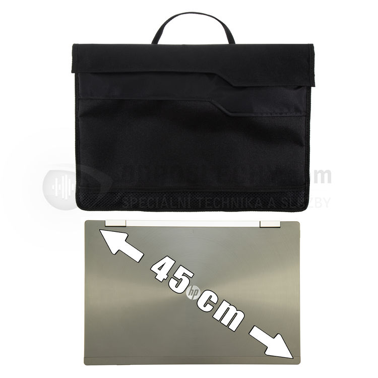 Pouzdro Faraday Shield pro notebook je široké 46 centimetrů a 32 cm vysoké. Vejdou se do něj notebooky a mobilní pracovní stanice do velikosti úhlopříčky displeje 17 palců. Pojme i některé laptopy s úhlopříčkou 18", doporučujeme je změřit a porovnat s rozměry pouzdra. Pro další elektroniku nabízíme ještě větší pouzdro Faraday Shield, do kterého se vejde více přístrojů najednou. K dispozici jsou také menší pouzdra pro mobilní telefony, tablety a malé cestovní notebooky.